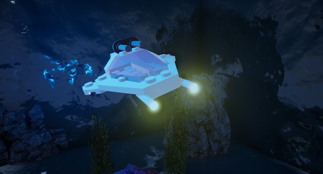 I made the Lego ship and Lego man into Blue prints. To the Blue prints of the ships I added lights, and set both creations up to rotate when played In the sequencer. I wanted the ship to feel aquatic still, so I used the front long pieces as lights again.